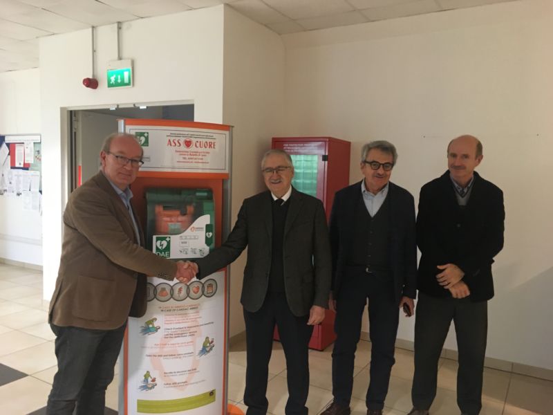 L’Associazione cesenate per la lotta contro le malattie di cuore ASSOCUORE dona un nuovo defibrillatore automatico al Magazzino Unico di Pievesestina.
