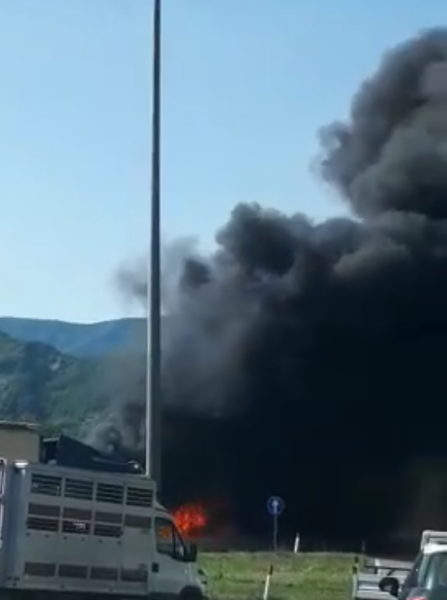 Camion a fuoco sulla E45. Il tir è avvolto dalle fiamme e una colonna di fumo nero e denso si è alzata in cielo. E’ successo alle 15.30 circa di oggi martedì 17 settembre. Il camion trasportava olio vegetale. Il Verghereto è chiuso. Il camionista sarebbe illeso in quanto sarebbe riuscito a scappare. Strada chiusa direzione sud Roma. Sul posto ci sono due mezzi dei Vigili del Fuoco e la Polizia stradale.