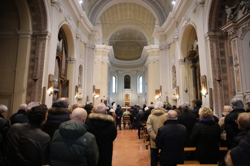 Cesenatico ha accolto oggi la salma di Azeglio Vicini per la tumulazione nella tomba di famiglia. Nella chiesa di San Giacomo, gremita, c’erano la moglie Ines, i figli, i nipoti e tante persone legate al Mister. Ad accogliere il feretro c’era il gonfalone dei garibaldini, sezione Valzania di Cesena, lo stendardo del Cesena Calcio dove aveva giocato e allenato e quello del Panathlon Club Cesena (di cui era presidente onorario). Dopo i funerali di ieri a Brescia, città dove il Mister abitava e dove si è spento, Cesenatico ha voluto dare il proprio saluto al compianto ct. Cittadina dove viveva per diversi mesi all’anno. Ed è stato sepolto nella tomba di famiglia, nel cimitero locale a pochi metri da quella di Marco Pantani. “Azeglio è stato una luce, un riferimento per tutti noi, la comunità di Cesenatico lo ringrazia”, ha detto don Giampiero Casadei che conosceva bene Azeglio Vicini. Chiesa gremita, ed è la stessa sul porto canale dove si svolsero i funerali di Marco Pantani.