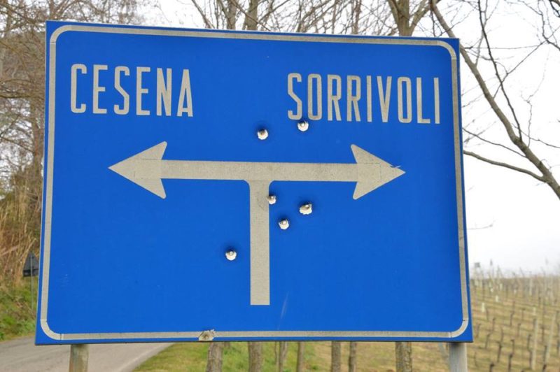 Un cacciatore con poca mira? Certo non era un cecchino quello che ha ridotto in questo stato il cartello stradale sulla via che da Cesena porta alla frazione di Sorrivoli, a Roncofreddo. Sette fori ben distinti, che sembrano quelli di una fucilata di palllettoni, solitamente viene usata per le volpi dai cacciatori di frodo. La foto, scattata ieri, è di Stefano Angeli che l’ha postata sulla pagina Facebook “La Cesena che vorremmo”. La strada in questione è quella che dal centro cesenate si inerpica verso la collina; molto frequentata dalle persone che amano camminare soprattutto nei fine settimana. E quei fori netti sul cartello non danno sicuramente tranquillità per i pedoni.