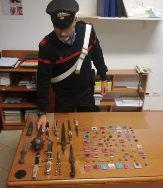 In particolare, i Carabinieri, sulla scorta delle pregressa attività condotte su collezionisti archeologi fai da te, a San Giovanni in Marignano (RN), hanno proceduto al controllo degli espositori presenti alla manifestazione denominata “il vecchio e l’antico” sorprendendo M.F. – ritenuto responsabile del reato detenzione abusiva di armi -, in possesso di materiale, tutto illegalmente detenuto: