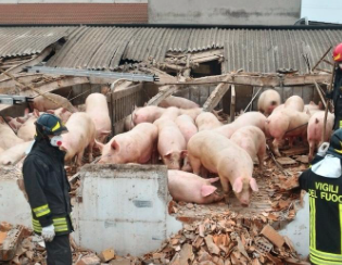 Crolla il capannone di un allevamento a San Giorgio di Cesena in via Pisignano e fa strage di maiale. Alle 8 di oggi, giovedì 30 gennaio, è scattato l’allarme, ma la struttura che ospitata suini si è insaccata nella notte e ha schiacciato decine e decine di animali. I Vigili del Fuoco sono al lavoro da questa mattina e stanno cercando di portare in salvo i suini che sono ancora vivi. Altri recuperano le carcasse tra le macerie. All’interno c’erano circa 500 maiali. Sul posto anche i Carabinieri.