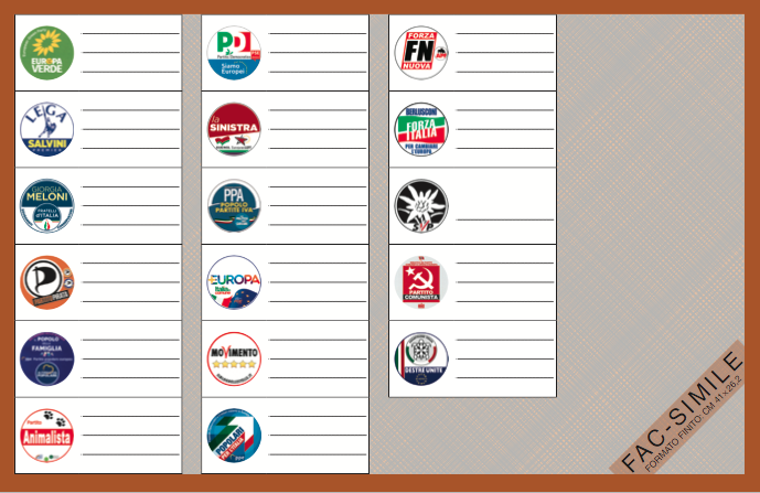 E’ stato diffuso sui siti delle Prefetture il fac-simile della scheda elettorale per le elezioni europee del 26 maggio prossimo in Emilia Romagna. Si vota domenica 26 maggio 2019, dalle ore 7 alle ore 23. Subito dopo inizierà lo spoglio dei voti.