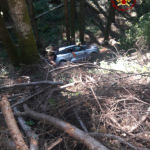 Famiglia di Cesena con l’auto nella scarpata a Camaldoli. I genitori sono rimasti feriti, mentre due bambini piccoli se la sono cavata.