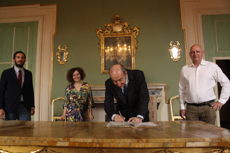 Questa mattina in Comune a Cesena è stato sottoscritto l’atto formale della cessione per 99 anni all’Università di Bologna del diritto di superficie sulle aree poste nel comparto dell’Ex Zuccherificio (6.371 mq complessivi) destinate alla nuova sede di Psicologia e dell’amministrazione universitaria. La firma è avvenuta alla presenza del Sindaco Enzo Lattuca, del notaio Antonella Odierna, del Presidente del Campus di Cesena professor Massimo Cicognani, del Dirigente del Settore Patrimonio del Comune Andrea Lucchi, del Dirigente Patrimonio UniBo Stefano Corazza e degli Assessori Christian Castorri e Franesca Lucchi. La Delibera di cessione all’Università di Bologna del diritto di superficie sulle aree poste nel comparto dell’Ex Zuccherificio, che di fatto rappresenta un ulteriore tassello che ricompone il progetto del Campus cesenate, era stata approvata nelle scorse settimane dalla Giunta e mercoledì 10 giugno dal Consiglio comunale. Nello specifico, si tratta della terza tappa di un percorso avviato con la realizzazione dell’insediamento universitario di Ingegneria e Architettura in Via dell’Università 50 e proseguito con la cessione, del Comune, del diritto di superficie dell’area sulla quale è in corso di realizzazione lo studentato.