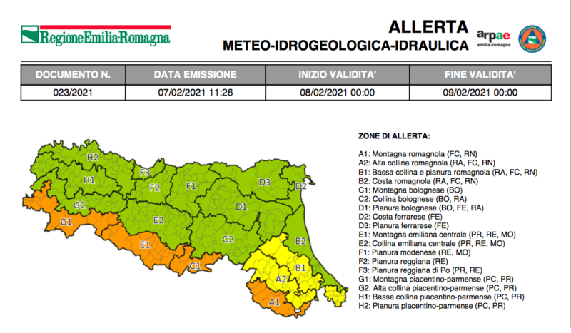 Allerta ARANCIONE per vento sulle province di PC, PR, RE, MO, BO, FC, RN; allerta GIALLAper vento sulle province di RA, FC, RN.