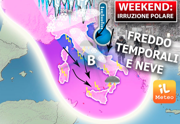 Nel WEEKEND del 4 e 5 Maggio, secondo IlMeteo.it ci sarà una potente irruzione di aria gelida polare che investirà in pieno l’Italia portando freddo e temporali e addirittura la NEVE fino a bassa quota.