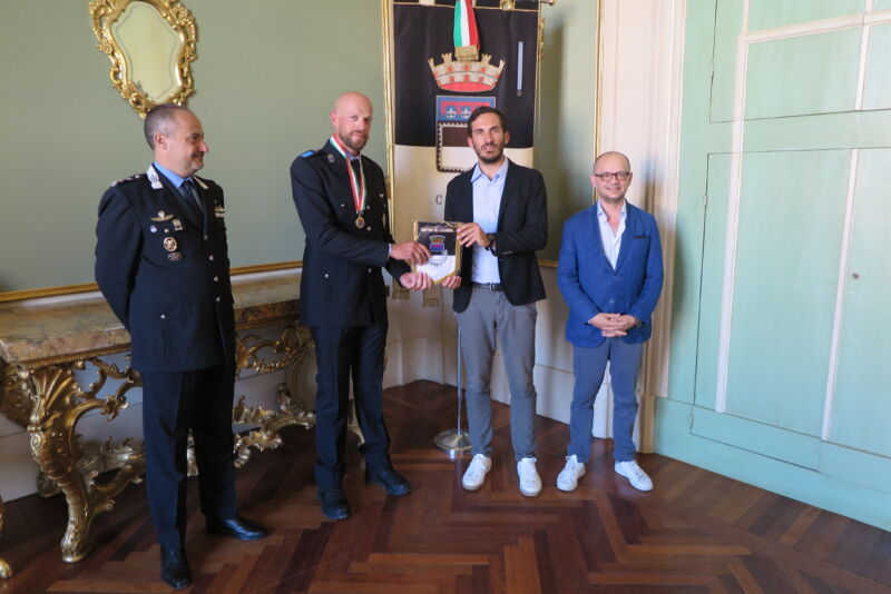 Nel pomeriggio Luca Venturini, accompagnato dal Comandante Andrea Piselli, è stato ricevuto dal sindaco Enzo Lattuca e dall’Assessore alla Sicurezza Luca Ferrini che si sono complimentati con il campione che ha portato ben alta a livello nazionale la bandiera di Cesena e il nome del Comando di Polizia Locale.