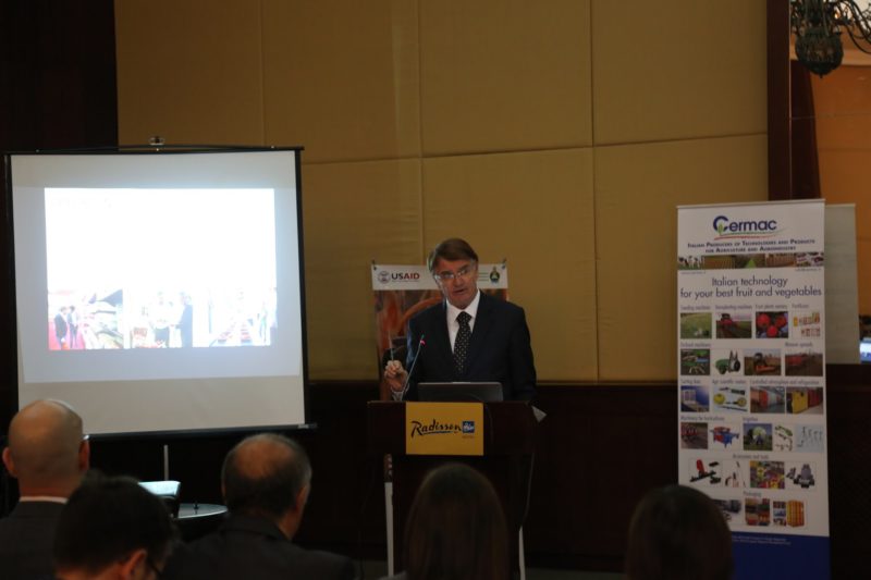 L’evento, organizzato dal Consorzio Cermac e da Macfrut, è stato l’occasione per presentare la prossima edizione della Fiera internazionale dell’ortofrutta (Rimini, 9-11 maggio 2018) e per promuovere la filiera ortofrutticola italiana, in particolare tecnologie e vivaismo che in Uzbekistan hanno trovato un importante mercato di sbocco. Presenti all’evento le imprese italiane Rinieri, Ferrari Costruzioni, Forigo, TR Turoni, Ing. Rossi, Infia, Unitec, Fruit Control Equipment.