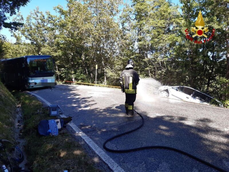 Paura oggi per lo scontro ta un pullman e un’auto. E’ successo oggi 20 luglio alle 15.45. Non ci sono stati feriti, ma l’auto coinvolta perdeva gas. Per questo è intervenuta una squadra del distaccamento dei Vigili del Fuoco di Bagno di Romagna è intervenuta in località Ville di Montecoronaro per l’incidente stradale che ha coinvolto una corriera.