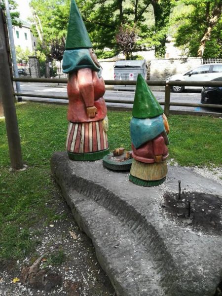 Sradicati e danneggiati e anche rubati gli gnomi del sentiero. Indignazione a Bagno di Romagna per ciò che è successo.