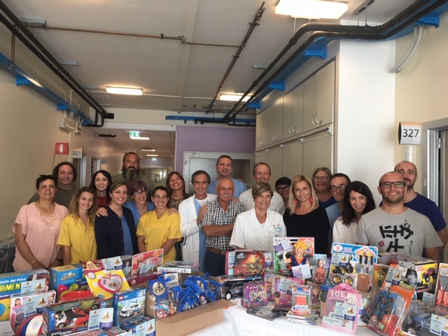 Un carico di giocattoli è arrivato oggi al Bufalini per i piccoli degenti dei reparti di Otorinolaringoiatria e Chirurgia Maxillo Facciale. Grazie ai ragazzi del “Circolo non solo rosso” di Bulgarnò Cesena e “Gli amici di Teo”, che, nei mesi scorsi, hanno organizzato una serata in memoria del caro amico Matteo Cucchi, “Memorial Teo”, il cui ricavato è stato devoluto, insieme all’Associazione “Qualcosa di grandi per i piccoli”, all’acquisto di preziosi giocattoli che saranno donati ai bambini ricoverati. Ogni volta che un piccolo paziente sarà sottoposto a manovre dolorose riceverà uno dei piccoli doni.