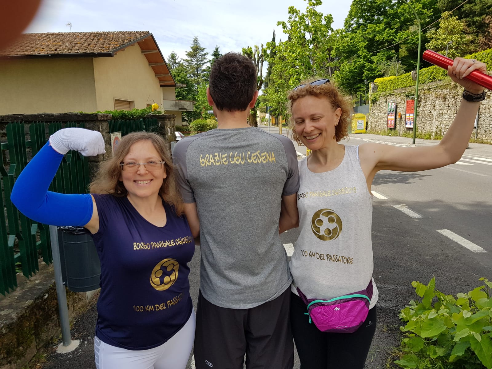 “Nei giorni di ricovero a Cesena, mia sorella, mio cognato e io ci siamo posti l’obiettivo di fare la staffetta di famiglia alla 100 chilometri”. E così è stato: il 25 maggio tutti e tre insieme, in staffetta, hanno partecipato in maniera non agonistica alla competizione, partendo da Borgo S. Lorenzo (anziché da Firenze) e percorrendo circa 73 chilometri. “Metaforicamente – afferma – ho concluso un percorso cominciato in un letto d’ospedale, con il palmo della mia mano accostato a quello guantato di mia sorella che aveva l’altra mano appoggiata al vetro che la separava dal suo compagno, unendoci in una catena che si è riproposta durante la gara con il passaggio del testimone.”