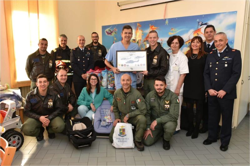 “Lo Stormo nella sua integrazione con il territorio locale – dichiara il Col. Pil. Sismondini – è sempre attento a tematiche di solidarietà anche per il ruolo che svolge nel compito istituzionale di soccorso aereo su tutto il territorio nazionale.Quest’anno, con la speranza di renderlo un appuntamento ricorrente, abbiamo deciso di testimoniare la nostra vicinanza ai piccoli degenti della Pediatria e alle loro famiglie, portando loro in dono un piccolo pensiero e magari anche un sorriso”.