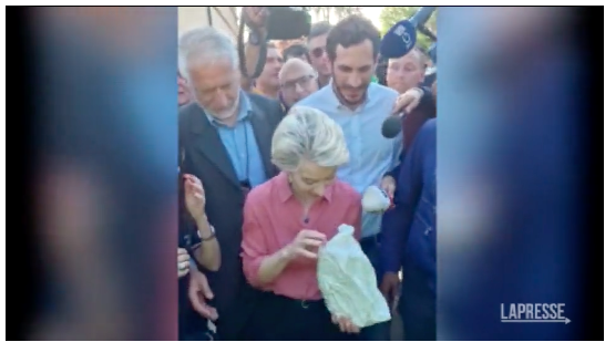 La presidente della Commissione europea Ursula von der Leyen per le strade di Cesena,nelle zone alluvionate. I cittadini le stringono la mano e le regalano anche una piadina: “E’ handmade”, fatta a mano, spiegano i cittadini. “Immagino non abbiate dormito per giorni”, dice lei. IL VIDEO AL LINK https://www.lapresse.it/politica/2023/05/25/von-der-leyen-a-cesena-una-piadina-per-lei-dai-cittadini-delle-zone-alluvionate/