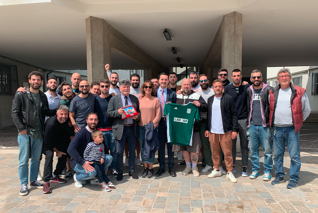 Sindaco e Assessore hanno festeggiato con i giocatori, accompagnati da allenatore e dirigenti e consegnato loro una targa per la vittoria conseguita nel Campionato di Eccellenza CSI.