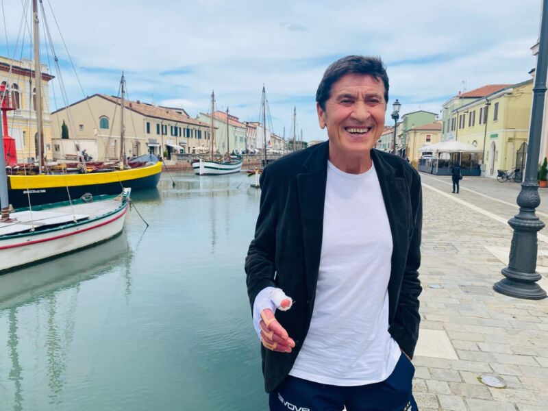 Gianni Morandi ieri ha fatto una delle sue prime uscite dopo l’incidente che gli ha provocato brutte ustioni e chiaramente ha scelto la sua Cesenatico. Così Anna l’ha fotografato sul Porto Canale Leonardesco.