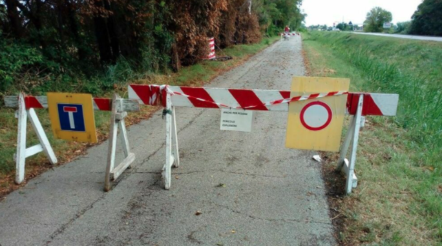 Strada chiusa per il ritrovamento di un ordigno bellico. La via Rigossa, tra Sant’Angelo di Gatteo e Sala di Cesenatico è stata chiusa perché da un vicino terreno della piccola arteria è spuntato un residuato della seconda guerra mondiale. L’area è stata posta in sicurezza in attesa degli artificieri che dovranno rimuoverla, probabilmente fra qualche giorno.