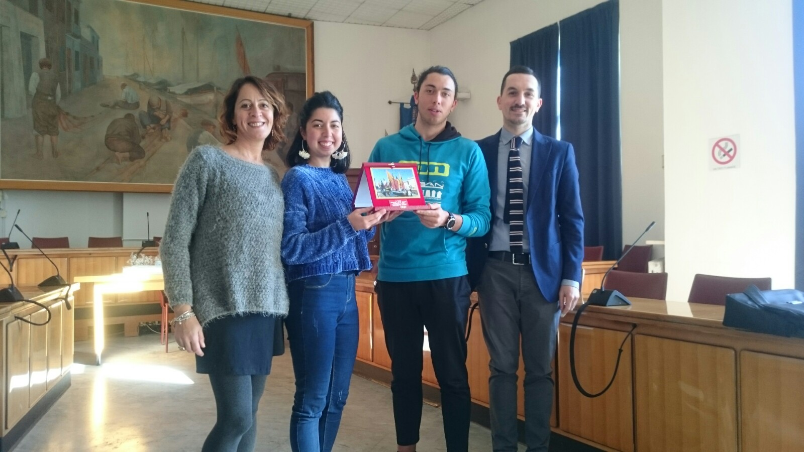 Questa mattina il Sindaco di Cesenatico Matteo Gozzoli e l’Assessore allo Sport Gaia Morara hanno ricevuto in Comune i fratelli cesenaticensi Margherita e Lorenzo Boschetti, campioni di Sup Wave e Kitesurf. Margherita, 22 anni, ha difeso brillantemente il titolo italiano di Sup Wave già conquistato nel 2017, in occasione dei FISW Surf Games disputatisi il 28 novembre scorso a Capo Mannu (OR) in Sardegna, mentre il diciannovenne fratello Lorenzo si è laureato campione italiano 2018 di Sup Wave, sempre a Capo Mannu, campione nazionale 2018 di kitesurf Under 19, titolo conquistato ai Campionati Italiani che si sono svolti a Viareggio lo scorso mese di settembre, e Campione d’Italia del circuito a tappe di kite foil. Nella foto il Sindaco Gozzoli e l’Assessore Morara consegnano a Margherita e Lorenzo Boschetti una targa come riconoscimento per i brillanti risultati sportivi conseguiti.