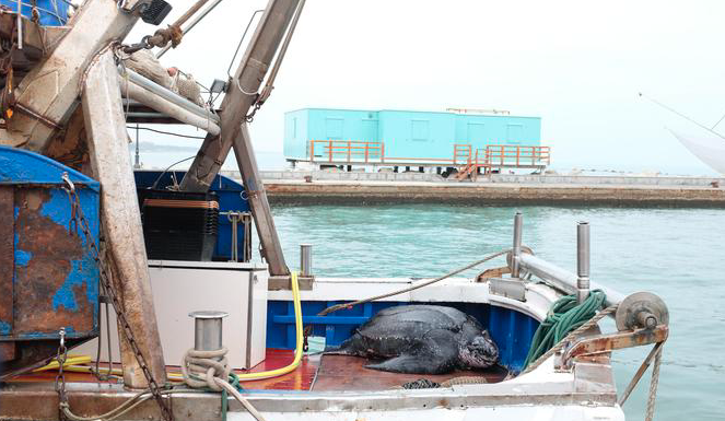 I veterinari della fondazione riccionese – una volta giunto in porto il peschereccio – hanno visitato a bordo la tartaruga di circa 300 chili di peso e 140 centimetri di carapace, probabilmente una giovane di sesso femminile, che presentava qualche escoriazione superficiale a causa della cattura nelle reti.