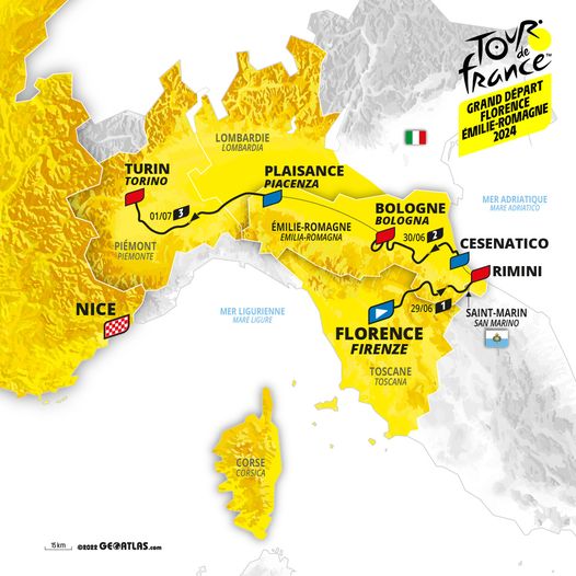 Il Tour de France 2024 partirà per la prima volta dall’Italia, con le tre tappe iniziali: Firenze-Rimini, Cesenatico-Bologna, Piacenza-Torino. La presentazione ufficiale della cosiddetta ‘Grand depart’ 2024 si è tenuta oggi a Palazzo Vecchio, con il sindaco Dario Nardella, il presidente della Regione Emilia Romagna Stefano Bonaccini, e il direttore del Tour de France, Christian Prudhomme.