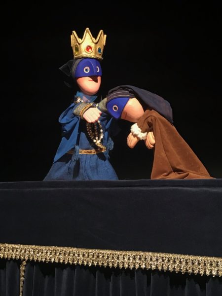 L’allestimento scenico molto giocoso, realizzato per i bambini di età scolare, usa lo stratagemma di un narratore attore “sui generis” che interagisce con i piccoli spettatori per coinvolgerli nelle vicende e per dialogare con i burattini protagonisti della storia.