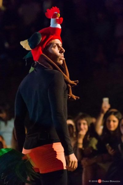 “Ho scritto un testo originale, costruito scene e costumi ed interpreto uno stravagante personaggio-guida. Ho cercato di creare una storia magica, poetica e divertente, ispirata alla natura e alle sue straordinarie forme. Il Carnevale mi ha permesso in un certo senso di «animalizzarmi», per dare corpo e voce ai veri protagonisti di questa storia: leoni, tartarughe, elefanti e tanti altri”.