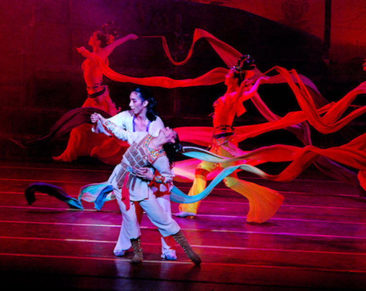 Da questo serbatoio di storie è partito il Chinese Dance Theatre Lanzhou per ideare “I Racconti della Via della Seta”, un’opera pirotecnica che vuole essere sintesi delle leggende e dell’arte del balletto cinese – così diverso dal nostro. La vicenda, in prima italiana assoluta, immagina l’origine mitica del nome delle grotte: un giovane pittore, Mogao, tentando di arrivare alle Grotte di Dunhuang, fu ferito e rischiò di morire nel deserto. Tratto in salvo da un giovane Signore della Guerra, riuscì a sopravvivere e a raggiungere le Grotte, per poi scoprire che il Signore della Guerra fosse in realtà una ragazza. I due giovani si innamorarono, trovando però l’ostacolo del padre di un potentissimo Generale.