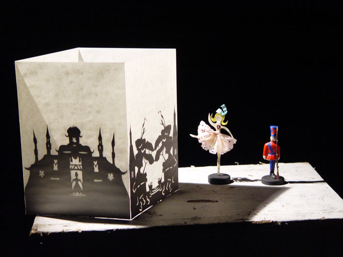 Quella di H. C. Andersen è stata una vita spesa a scrivere e raccontare storie, a ritagliare strane e divertenti figurine nella carta, per animare il suo personale, onirico teatro della vita. La totale dedizione alla scrittura è stata premiata da una ben meritata popolarità universale, sia tra i piccoli che tra i grandi. A Drammatico Vegetale piace ricordare l’autore danese utilizzando proprio gli ingredienti più significativi del suo mondo fantastico e combinarli, per tre volte più una, in differenti maniere all’interno del loro spettacolo, dove il linguaggio del teatro di narrazione dialoga con i soggetti di un teatro delle ombre ricavato in un vecchio tamburo, che a sua volta si confonde con quello di marionette tanto amato da Andersen. Così, nello spettacolo di teatro di figura, le fiabe escono da una scatola di cartone piena di ricordi: un pisello rinsecchito, un vecchio soldatino, la scatola stessa trasformata in teatrino, una forbice e poco altro, raccontano le loro avventure.