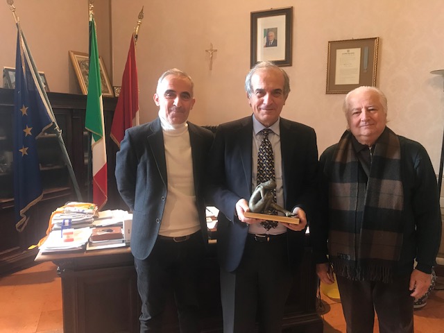 Giovedì abbiamo presentato l’evento al Sindaco Gian Luca Zattini facendogli dono di una delle opere che Otello Turci consegnerà alla Associazione Dino Amadori, intitolata “Sensibilità”.