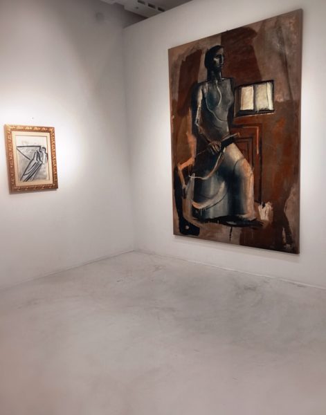 Augeo Art Space ospita anche tre opere monumentali di Sironi (“Figura femminile con libro e moschetto”, “Figure e case”, “Composizione Murale”) oltre ai numerosi disegni della collezione della galleria Cinquantasei che vanno ad arricchire tutto il discorso pittorico. Tra i capolavori in esposizione c’è spazio per indagare la pittura murale, genere nel quale Sironi eccelse e per cui è principalmente ricordato dal grande pubblico: interessante in tal senso è una macro opera di cm 262×182 “Figura femminile con libro e moschetto”, bozzetto per il grande affresco Dux per la Casa Madre dei Mutilati di Roma.