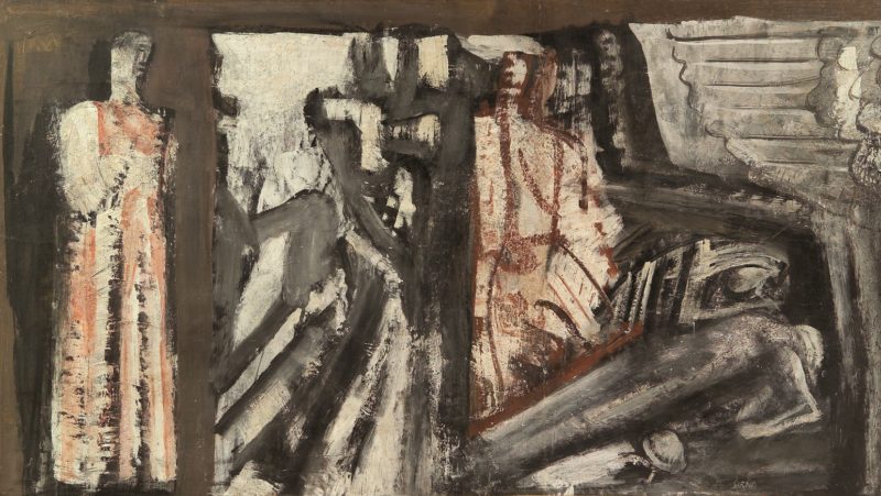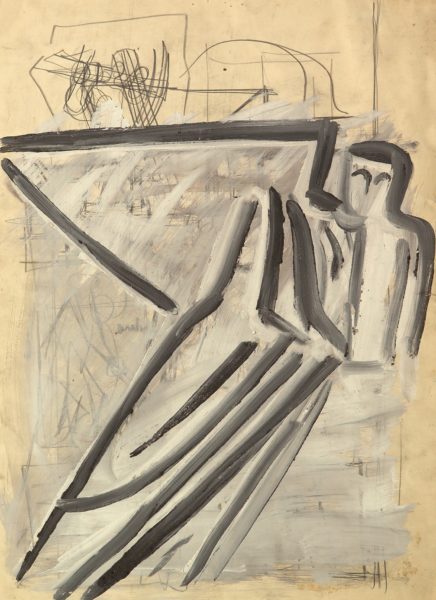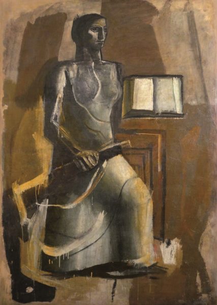 Augeo Art Space ospita anche tre opere monumentali di Sironi (“Figura femminile con libro e moschetto”, “Figure e case”, “Composizione Murale”) oltre ai numerosi disegni della collezione della galleria Cinquantasei che vanno ad arricchire tutto il discorso pittorico. Tra i capolavori in esposizione c’è spazio per indagare la pittura murale, genere nel quale Sironi eccelse e per cui è principalmente ricordato dal grande pubblico: interessante in tal senso è una macro opera di cm 262×182 “Figura femminile con libro e moschetto”, bozzetto per il grande affresco Dux per la Casa Madre dei Mutilati di Roma.