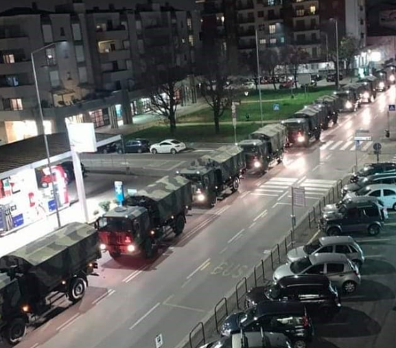E’ l’immagine del dramma di quello che sta vivendo la città di Bergamo. Una colonna di mezzi militari ha attraversato nella notte il centro di Bergamo, dal cimitero monumentale fino all’autostrada, con a bordo i feretri dei morti da Coronavirus che il camposanto bergamasco non riesce più a gestire.