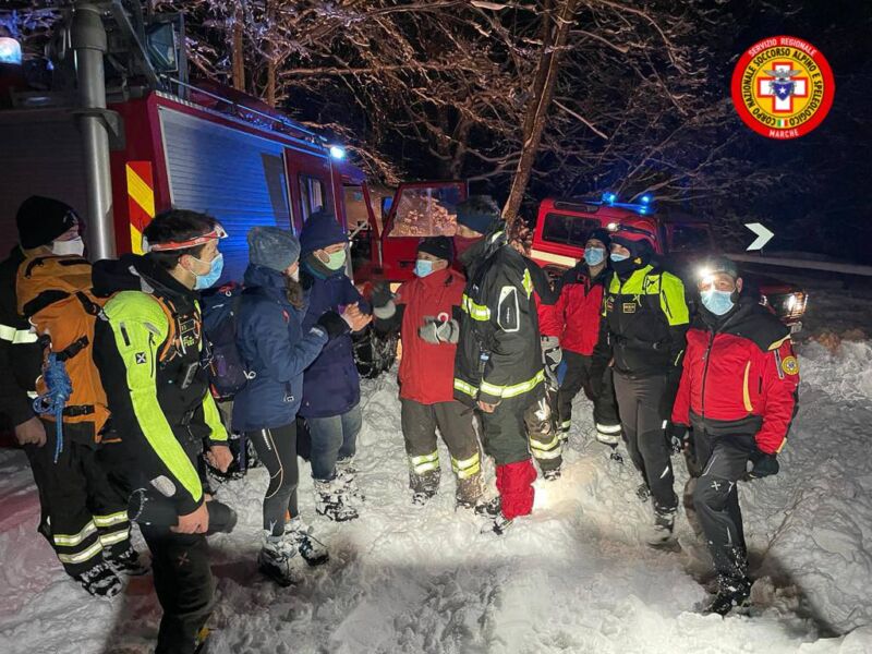 Purtroppo, erano ignari del fatto che quella zona cela diverse insidie tra le quali molte balze rocciose piuttosto alte. Complici anche le abbondanti precipitazioni nevose, sono stati costretti a ritornare faticosamente sui loro passi mentre, nel frattempo, sopraggiungeva il buio. La squadra del Soccorso Alpino e Speleologico di Pesaro, si è portata rapidamente sul posto sfruttando il più possibile la strada che sale alla montagna dal versante opposto, per proseguire poi la ricerca a piedi a causa della sopraggiunta impraticabilità del tracciato dovuta alla neve stessa. Mantenendo sempre uno stretto contatto telefonico con i due ragazzi, i soccorritori li hanno poi guidati verso di loro fino ad individuarli. Successivamente, con l’aiuto dei VVF presenti, i due malcapitati, piuttosto infreddoliti, sono stati riaccompagnati a valle alla propria auto