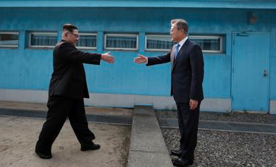 Un anno fa sarebbe stato impensabile. Eppure, Kim Jong-un è diventato il primo leader nordcoreano a mettere piede in Corea del Sud, attraversando la zona smilitarizzata che separa la penisola dalla fine della guerra di Corea nel 1953. Alle 9.30 del mattino ora coreana, le 2.30 di notte in Italia, in un momento ricco di simbolismo e sfarzo, il presidente sudcoreano Moon Jae-in e Kim si sono stretti la mano al confine, per poi dirigersi verso la Peace House, nel villaggio di confine di Panmunjom, per avviare colloqui formali sulla denuclearizzare e la pace della penisola coreana.