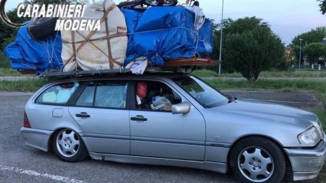 Dal controllo è risultato che l’uomo aveva caricato e legato una intera camera, comprensiva di armadio, rete, materasso, quattro biciclette, qualche pensile da cucina, pneumatici, pentole, abiti ed alimenti.