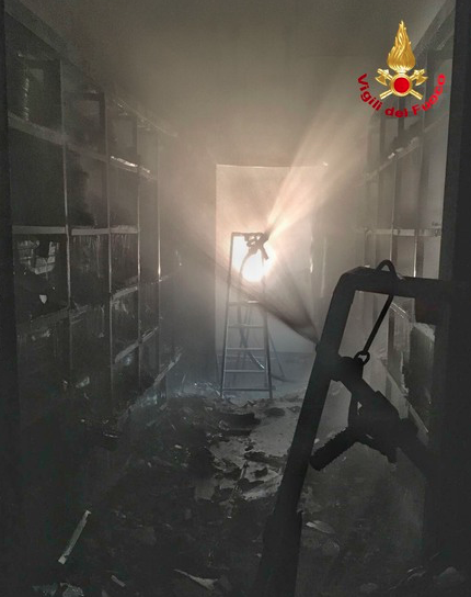 Il rogo è scoppiato in un magazzino che ospita l’archivio storico della Cineteca di Bologna, a Sasso Marconi in via Vizzano.