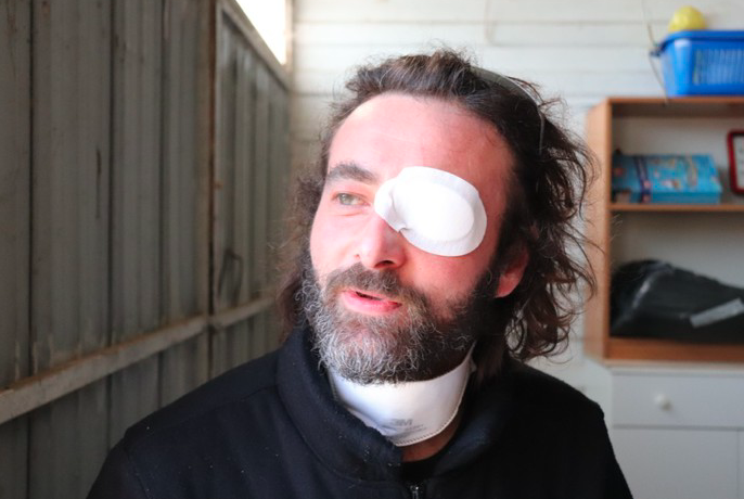 All’occhio sinistro ha una vistosa benda bianca. “È frutto del tanto piangere che mi ha fatto irritare l’occhio”, racconta.
