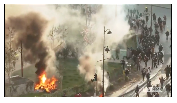 Ancora tensioni e scontri a Parigi nell’11esima giornata di proteste contro la riforma delle pensioni voluta dal presidente Emmanuel Macron. Gli agenti di polizia hanno utilizzato lacrimogeni per disperdere i manifestanti a Place d’Italie, punto d’approdo del corteo, dove un albero è stato incendiato e ha preso fuoco. Si sono registrati anche lanci di oggetti e sassi. Decine le persone arrestate. Video al link:https://www.lapresse.it/esteri/2023/04/06/parigi-ancora-scontri-nelle-proteste-per-la-riforma-delle-pensioni/