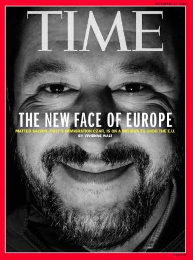 Nella lunga intervista al Time, concessa il 4 settembre scorso alla giornalista Vivienne Walt, “Salvini ha illustrato un piano che non solo scuoterebbe le fondamenta dell’Ue ma la ridisegnerebbe dall’interno”. “Cambiare l’Europa è un grande obiettivo, ma io penso che sia a portata di mano”, dice il leader della Lega. Che, sottolinea il giornale americano, “non è il capo del governo, ma non ha bisogno di esserlo: la sfilata di dignitari stranieri che fanno la fila per incontrare Salvini lascia pochi dubbi su chi comanda, Salvini adesso è visto come la cosa più vicina che l’Italia ha a un amministratore delegato”.