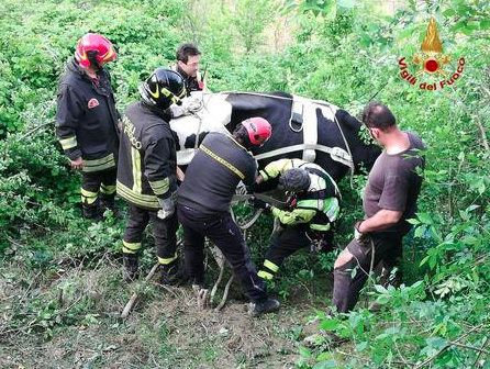 Dopo un inutile tentativo di recupero da parte dei proprietari, con l’animale stremato perché cercava di risalire il ripido pendio, sono intervenute tre squadre di vigili del fuoco, munite di autopompa serbatoio, furgone speleo alpino fluviale ed elicottero Drago 60. Per far sì che il volo si svolgesse in totale sicurezza è stato necessario tagliare anche alcuni arbusti. Una volta portata in salvo la mucca ha immediatamente ripreso le proprie forze.