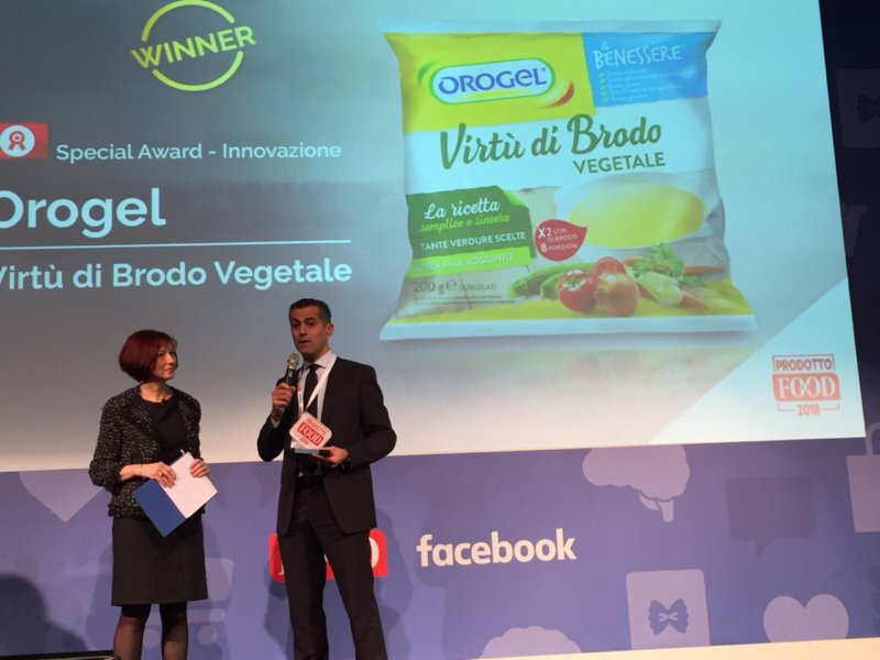 Virtù di Brodo Orogel, il primo brodo vegetale surgelato in singole gocce, è stato premiato come prodotto più innovativo del 2017 nell’ambito di Food Match, il convegno B2B organizzato dalla rivista FOOD in partnership con Facebook dedicato alle aziende del food & beverage. La manifestazione, che quest’anno aveva come tema #ReadyForTomorrow, ha come mission quella di premiare, per ogni settore dell’alimentare, i prodotti più innovativi lanciati sul mercato nell’ultimo anno.
