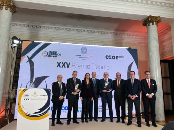 Luigi Ferraris, amministratore delegato del gruppo Ferrovie dello Stato Italiane e José Bogas Galvez, amministratore delegato di Endesa, hanno ricevuto stasera il Premio Tiepolo 2022, un riconoscimento che, dal 1996, valorizza il percorso di imprenditori di successo spagnoli e italiani e il loro importante contributo al potenziamento delle relazioni economiche e commerciali tra i due Paesi. A consegnare il premio agli ad è stata la ministra dell’Industria, del Commercio e del Turismo spagnola, Reyes Maroto, presso il Palazzo di Amboage, sede della rappresentanza diplomatica dell’Italia a Madrid. Ferraris e Bogas “sono due noti dirigenti, uno italiano e l’altro spagnolo, le cui aziende sono leader in due settori strategici dell’economia e che puntano decisamente alla decarbonizzazione. Due settori in cui le attività di queste due aziende sono ovviamente molto vicine alle esigenze delle persone, migliorando il benessere della società in cui viviamo”, ha affermato l’ambasciatore d’Italia a Madrid Riccardo Guariglia, aprendo la cerimonia di consegna del premio, conferito dalla Camera di Commercio e Industria Italiana per la Spagna (Ccis) e dalla Confederación Española de las Organizaciones Empresariales (Ceoe), sotto gli auspici dell’Ambasciata d’Italia in Spagna. All’evento hanno preso parte anche il presidente di Assocamerestero, Mario Pozza ed i Presidenti della Ccis, Marco Pizzi, e della Ceoe, Antonio Garamendi. Il premio, giunto alla sua 25° edizione, è stato patrocinato da Brembo, Fs, Generali, Gruppo Italfarmaco, Endesa, Iveco, Mediaset España, Negrini, Unidad editorial, Intesa Sanpaolo e Iryo. Negli anni è stato conferito a personalità come Francesco Starace, Giovanni Agnelli, Cesare Romiti, Pietro Salini, Marco Tronchetti Provera e Mario Monti.