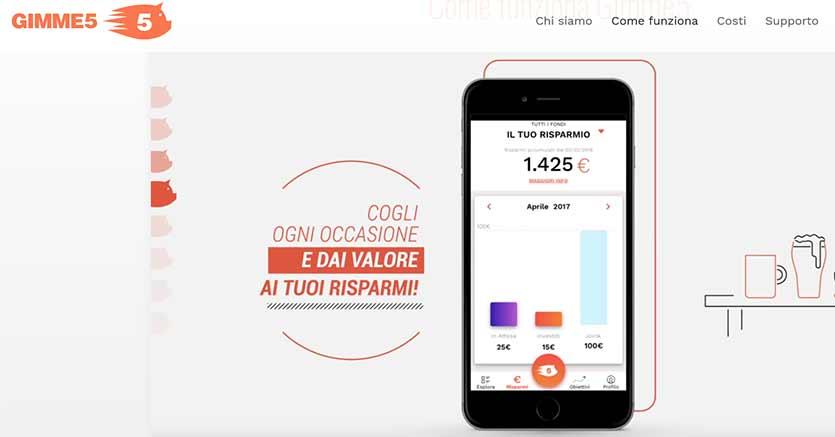 Salvadanaio Gimme5 è il servizio digitale di AcomeA SGR che consente di accumulare in maniera libera e automatica piccole somme e di investirle con l’obiettivo di farle crescere nel tempo senza alcun vincolo di importo e ricorrenza.