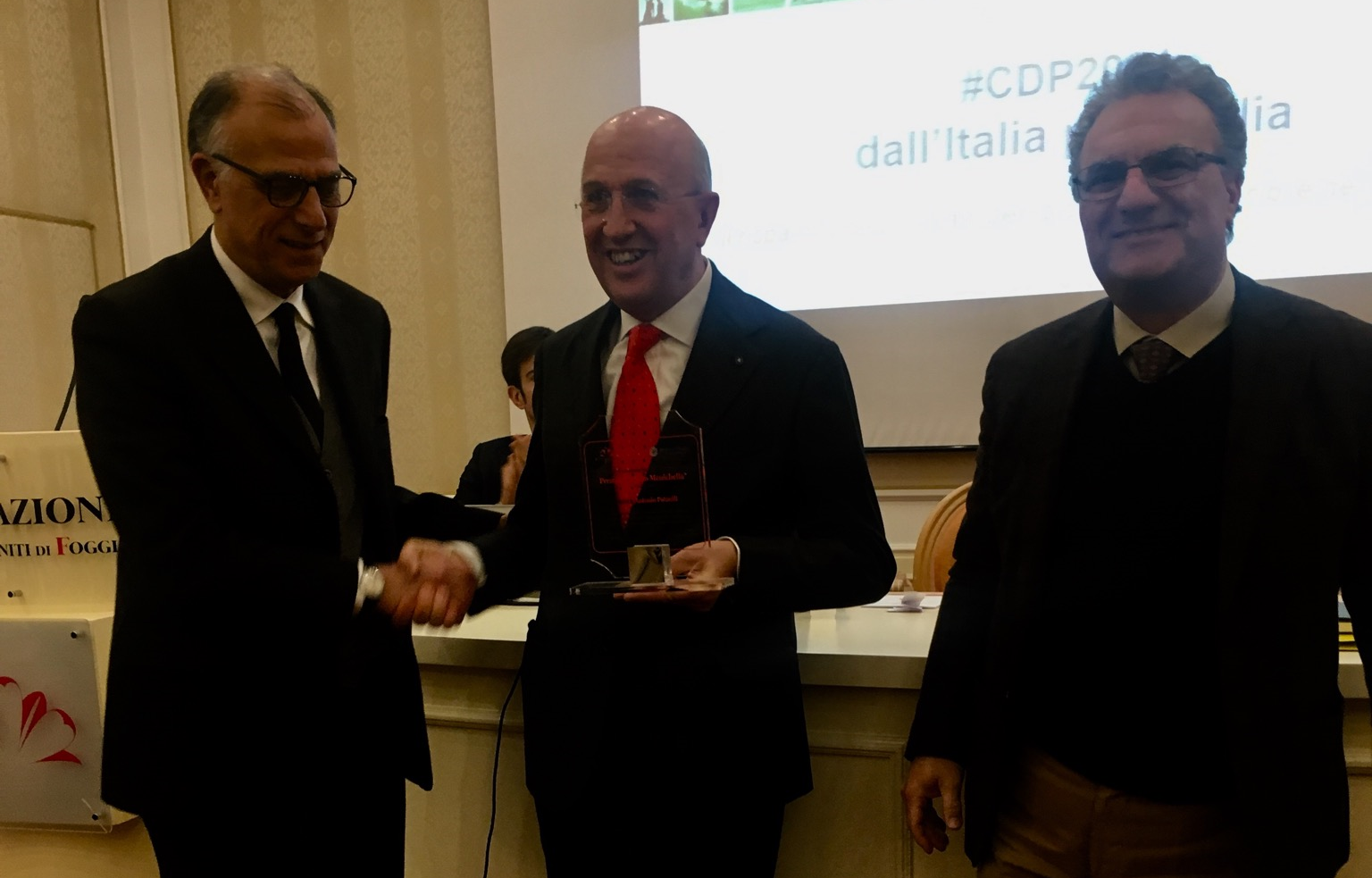 Patuelli ha ricevuto il Premio, come riporta la motivazione, “in ragione del suo impegno” e per aver guidato il mondo bancario italiano, “in un momento delicatissimo, prestando particolare attenzione al risparmio privato”. Alla cerimonia di conferimento del Premio hanno preso parte, tra gli altri, Aldo Ligustro, Presidente della Fondazione dei Monti Uniti di Foggia, e Maurizio Mincuzzi, Direttore della Banca d’Italia succursale di Foggia.