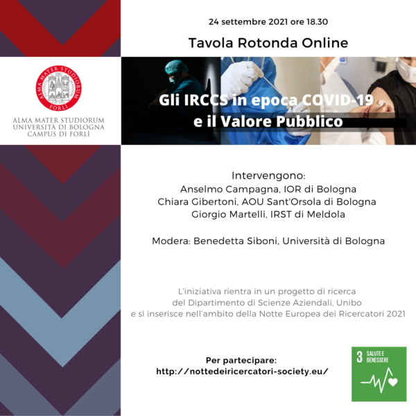 L’iniziativa fa parte di un progetto di ricerca del Dipartimento di Scienze Aziendali dell’Università di Bologna e si inserisce nell’ambito della Notte Europea dei Ricercatori 2021. Si riporta il sito web della Notte in cui è possibile esplorare le altre attività previste e si allega il programma specifico del Campus di Forlì del quale fa parte l’iniziativa in oggetto.