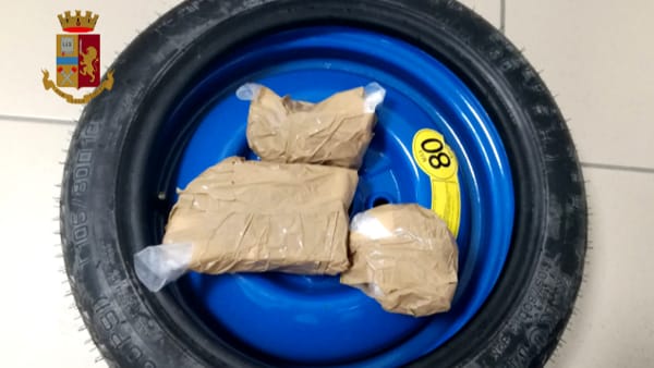 Durante il controllo i due hanno manifestato chiari segni di nervosismo. Tale atteggiamento ha insospettito gli agenti inducendoli ad effettuare una attenta ispezione dell’auto. Infatti, i poliziotti hanno rinvenuto e sequestrato oltre mezzo chilo di cocaina, che era stata occultata all’interno del ruotino di scorta del veicolo.