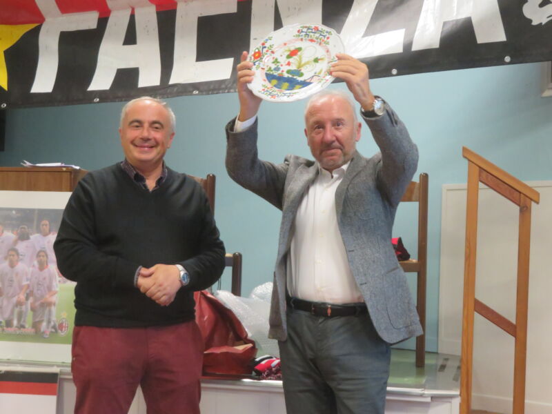 “Zac”, accompagnato da Doriano Tamburini storico vice agli inizi di carriera al Baracca Lugo, ha intrattenuto a lungo i soci e gli appassionati sportivi rossoneri rispondendo alle domande nell’intervista condotta dal presidente del sodalizio, Giuseppe Sangiorgi e dei numerosi tifosi rossoneri giunti anche da Modena. A salutarlo anche due ex grandi calciatori faentini, Floriano Lasi e Orlando Santarelli. E’ stata una serata conviviale piacevolissima e piena di contenuti.