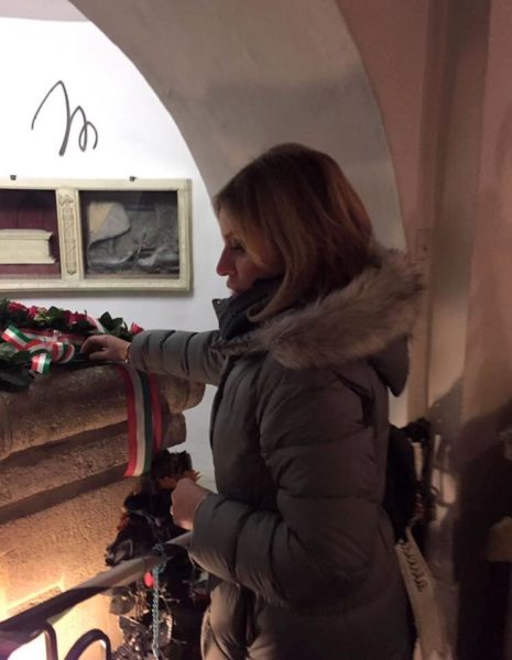 Una domenica mattina a Predappio per Alessandra Mussolini. Una domenica mattina documentata su Twitter con questo nostalgico cinguettio con tanto di foto che la ritrae mentre omaggia la tomba di Benito Mussolini, Duce e suo nonno. In un clima di caccia ai fantasmi del passato Alessandra ieri mattina è arriva al cimitero di San Cassiano in Pennino a Predappio dove c’è la tomba di famiglia per un saluto ai suoi cari. Non c’era molta gente anche per via del freddo. Alessandra Mussolini si è raccolta in silenzio per una decina di minuti nella cripta del Duce.