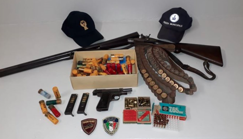 Gli agenti hanno trovato, vicino alla doppietta, una scatola contenente delle cartucce calibro 12 e alcune cartucce calibro 9mm.